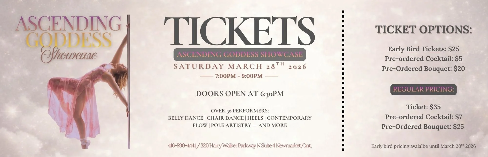 This two-hour showcase brings together over 30 performers in a stunning display of movement, expression, and feminine resilience. From powerful pole artistry to sensual heels, contemporary flow, belly dance, and chair dance — each performance is a reflection of courage, growth, and unapologetic self-expression.