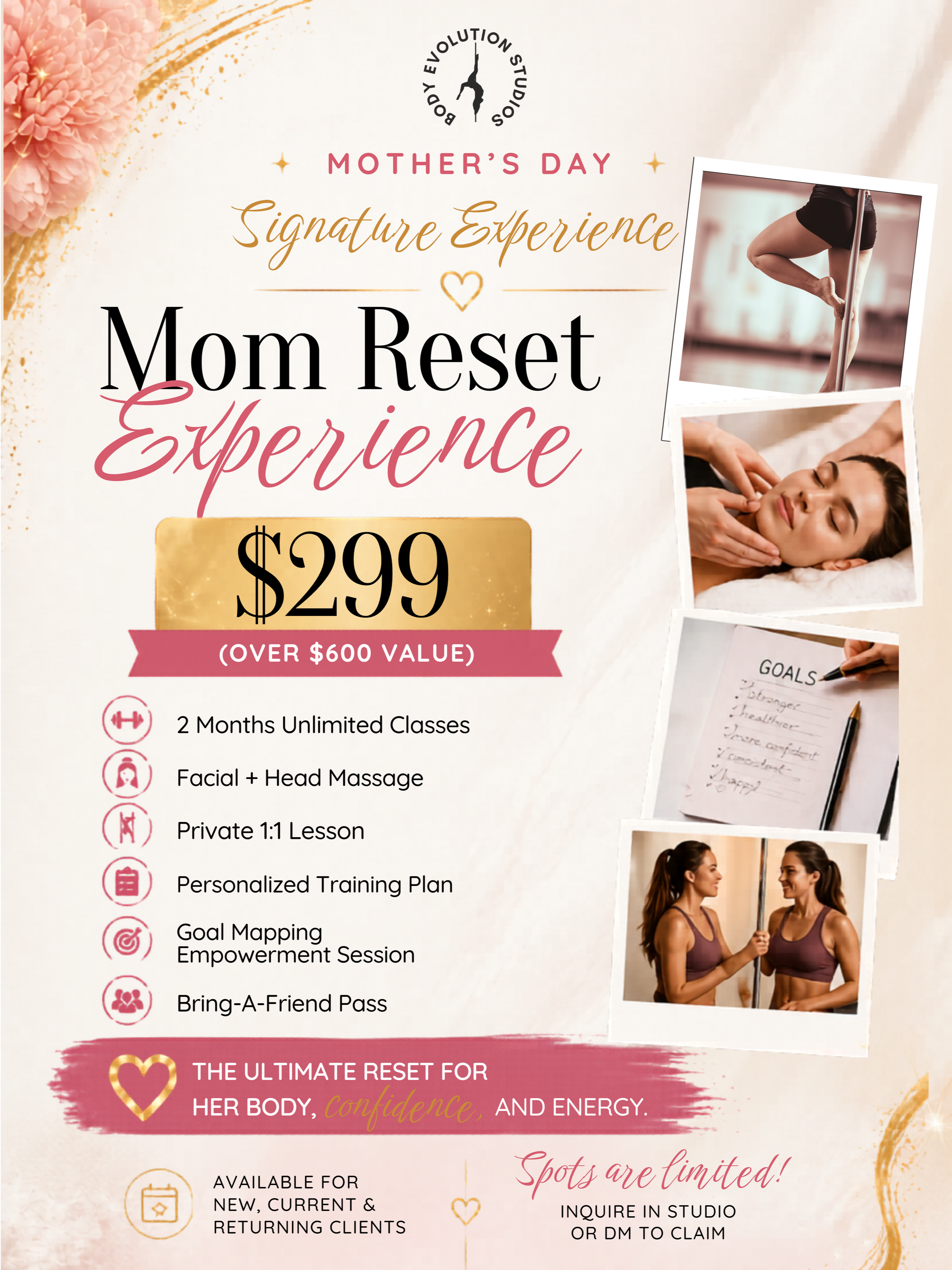 Limited spots available for Mother’s Day packages.